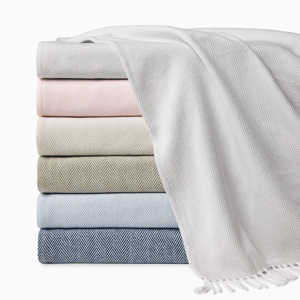Cotton, when brushed, undergoes a transformation that gives it a plush, alluring texture this side of heaven. This Celine throw blends soft color with cream in a herringbone weave and finishes it with a twisted, natural fringe. Available in sevaral colors to coordinate with any space in your home. The Celine throw is affordable and makes an excellent gift that can be personalized with a monogram or embroidery.